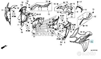 Codice ricambio: 64360-MJP-DA0ZA Accessorio marca: Honda Modello accessorio: CRF 1000 AFRICA TWIN Applicabilità marca: Honda Applicabilità modello: CRF 1000 carena anteriore sinistra crf1000 colore candy ha delle piccole imperfezioni nell'adesivo anno 2017 africa vedi foto allegate c913