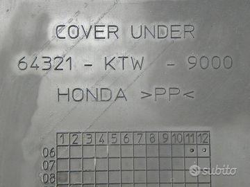 Codice ricambio: 64321-KTW-9000 Accessorio marca: Honda Modello accessorio: Carena sottopedana scocca Honda SH 300i (n. 270) Applicabilità marca: Honda Applicabilità modello: SH 300 i Carena sottopedana scocca originale per Honda SH 300i (n. 270), 1° serie, anni 2006/2010 Cover Under, colore nero, , cod. 64321-KTW-9000, si prega controllare sempre le condizioni dalle foto allegate e di verificare la corrispondenza del codice del ricambio, Euro 20.