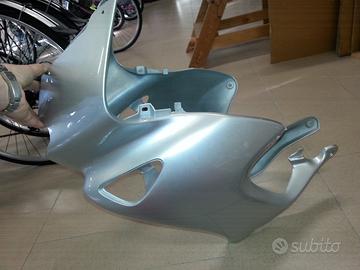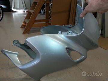 Le carene anteriore è in buono stato, ha solo una piccolissima crepa sotto il faro anteriore ma non sono graffiate, il kit comprende anche la carena porta cruscotto, e il cupolino.