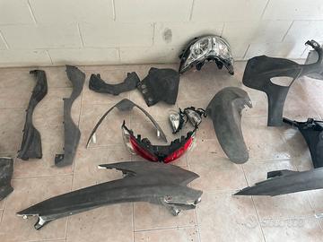 Set carene complete Burgman200- 2015 compresi fanale anteriore , posteriore e frecce…non oresente in foto e’ compreso telaietto anteriore che permette di effettuare restyling anche a nodello del 2007 in poi. Le carene sono completamete carteggiate pronte per essere verniciate o carbon skinning