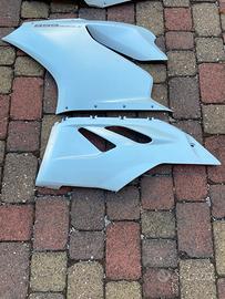 Vendo carene laterali complete per Ducati Panigale 899/1199 colore arctic white. Le carene sono usate, tutti gli attacchi integri, nessuna crepa o spaccatura. Hanno qualche graffio, come si vede dalle foto. Vendo in blocco.