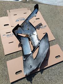 Vendo carene Honda CBR1000rr 2004 non originali di casa Cinese. Si annota che una linguetta della carena inferiore rotta, rigonfiamento di una carena inferiore lato dx dovuta al calore dello scarico, per il resto sono in buono stato e non hanno segni di usura significativo. Causa per cui devo specificare usato con parti guaste rimanendo nella massima trasparenza.