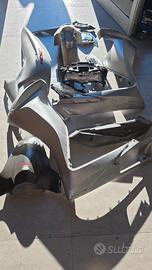 Vendo in pacchetto completo e non separatamente carene, faro, piantone di sterzo, cerchio, steli forcelle,manubrio, tutto incidentato di un Sh 350 2023 colore grigio opaco sport.