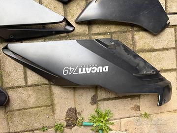 Carene originali Ducati 749, il cupolino e una carena laterale presentano delle rotture facilmente riparabili. Da riverniciare in alcuni punti.