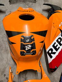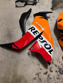 carene repsol originali compatibili da 2012 al 2015 unici difetti carena lato destro leggermente danneggiato e lo specchietto ( caduta da ferma) leggermente trattabili