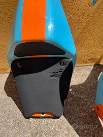 Vendo carene in vetroresina per honda rs 250, erano montate su una aprilia rs250. Per montarle su aprilia rs bisogna però modificare il telaietto della strumentazione in caso ho un telaietto che è già stato modificato più volte da vendere a parte per 25 euro in più, cosi non dovete modificare il vostro originale. La carena frontale è stata modificata sul lato destro per far stare il radiatore. (Vedi foto) SOLAMENTE RITIRO A MANO. NON SPEDISCO