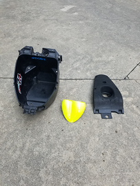 Vendo i seguenti pezzi: Fianchetti centrali neri 50? coppia Sottopedana nuovo bianco 50? Scudo anteriore grigio 25? Plastica manubrio nera 20? Sottocoda nero 20? Sellino originale nero 50? Pedana nera 30? Plastica inferiore sella nera 30? Sportello portaoggetti nero 20? Maniglie passeggero gialle 20? Cornice blocchetto accensione nero 15? Vano sottosella 50? Cornice tachimetro gialla 20? Parafango anteriore grigio 25? Griglia scudo gialla 45? Puntale anteriore nuovo grigio 55? Faro anteriore 40? Per acquisto in blocco 450? Preferibile consegna a mano, in quanto materiale fragile. Non spedisco. Prezzi non trattabili. Astenersi perditempo.