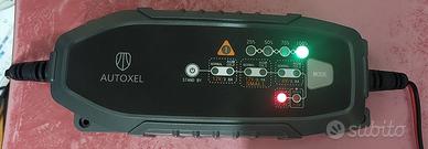 Nuovo mai usato, acquistato per una moto di una ragazza ma ora ha venduto la moto! Ho solo provato che funzioni correttamente. Caricabatterie e mantenitore per auto/moto - Intelligente con 8 modalità per batterie al piombo, litio e gel (2-120 Ah). Il caricabatterie della Autoxel è molto pratico e versatile, il manuale di istruzioni è anche in italiano e questo è molto utile, anche se non è sempre chiarissimo nella descrizione dell'utilizzo. Può caricare e mantenere in carica batterie da 12 V e da 6 V al piombo, gel, MF e al Litio da 12,8 V. Col tasto "MODE" si possono selezionare i vari programmi di ricarica per i vari tipi di batterie da 6V e 12V, suddivisi in "NORMAL" o "COLD" se la temperatura è inferiore ai 10°C e per le 12V se fare una carica veloce con corrente di 3,8A, oppure una carica lenta con 0,9A. Per le batterie da 6V eroga una corrente di carica di 3,8A, per le batterie al Litio da 12,8V eroga 3,0A. Ha una buona potenza di carica, ad esempio per le batterie da 12V le istruzioni indicano un utilizzo da 12 a 120 Ah Durante la carica si illumina lampeggiando prima un LED rosso (carica fino al 25%), poi arancione (50%), poi giallo (75%) e infine verde (100%); quando la carica è terminata il led verde da lampeggiante diventa fisso. I LED inoltre indicano anche errori come la polarità invertita (LED rosso lampeggiante), la capacità troppo alta per la modalità selezionata (LED giallo lampeggiante), voltaggio troppo alto o basso (LED giallo fisso) e se la batteria non si può recuperare nella modalità recupero (LED rosso fisso). Dimensioni (L x P x A): 19,9 × 7,5 × 5,5 cm. Peso: 774 gr