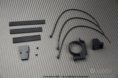 Modello con uscita accendisigari 12V e USB 5V con sistema di fissaggio attorno al manubrio.