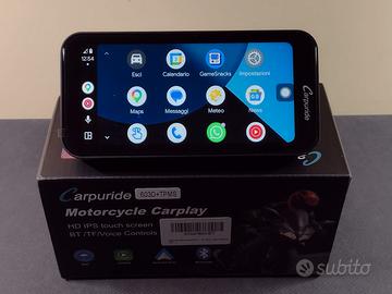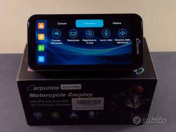 Sistema di navigazione universale compatibile con tutti i motoveicoli - Schermo tattile IPS da 6,3 Pollici in HD - Navigazione GPS con CARPLAY e ANDROID AUTO - Connessione wireless con la maggior parte degli Smartphone di ultima generazione - Doppia connessione Bluetooth – Sistema DVR integrato con telecamera frontale e posteriore - Assistente e telefonia vocale - Lettore schede Micro-SD - Interfono casco – Omologazione IP67 per resistere sia al vento che alla pioggia – Sensori TMPS di serie per il rilevamento costante della pressione degli pneumatici – Scheda Micro-SD da 64GB inclusa. Informazioni tecniche: - Schermo IPS da 6,3 Pollici con risoluzione 1560×720 Pixel - Leggibile alla luce del sole con 1000 NIT - Connettività wireless CarPlay, Android Auto e doppio Bluetooth 5.0 - Grado di protezione IP67 contro la pioggia e la polvere - Doppio Bluetooth 5.0 con funzione interfono per 2 motociclisti - Due telecamere 1080p - Sistema DVR integrato equivalente a DASHCAM - Controller cablato sul manubrio a tre pulsanti - Supporto per schede TF/SD fino a 64 GB per musica e contenuti multimediali - Alimentazione da 12 Volt con cavo diretto alla batteria o porta USB-A da 5 Volta 3 Ampere - Aggiornamenti OTA gratuiti e aggiornamenti firmware tramite scheda TF - Sistema di montaggio universale Nota: non compatibile con dispositivi Huawei e Smartphone basati su HarmonyOS. Prodotto nuovo e nella sua confezione originale proveniente da giacenza magazzino (offerta di liquidazione). SPEDIAMO UNICAMENTE CON LA FORMULA TUTTOSUBITO E NON EFFETTUIAMO CONSEGNE A MANO.