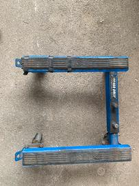 Questo carrello permette di spostare facilmente le moto in officina. Funziona con Center Jack o Fat Jack e con altrimartinetti di sollevamento. Le caratteristiche includono: larghezza regolabile da 33" a 50" alla base, altezza regolabile da 30" a 38", quattro punti di fissaggio e cuscinetti in gomma nei punti di contatto con il telaio.