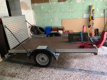 Vendo carrello trasporto moto e attrezzatura turistica. Non paga bollo ne assicurazione. Preparato e usato 2 volte. Può portare 2 Bmw gs. Non necessita di patete