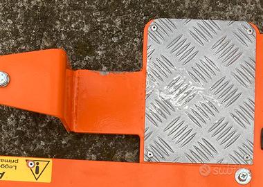 Anteriormente presenta un freno in gomma (piastra) che consente alla ruota anteriore di attraversare la piattaforma in entrambe le direzioni aumentandone la versatilità di utilizzo.