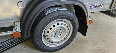 AFFARE, Vendo nuovo per errata misura, immatricolato 22 aprile 2026, carrello Cresci PT6C a pianale, frenato, per trasporto cose, come da foto, mai usato, appena ritirato con ancora gli adesivi sul battistrada degli pneumatici, allestito con ganci originali, ruota di scorta. Portata 750 kg, pneumatici automobilistici standard Fiat, Misura del pianale in teak nautico 235 cm x 130 cm, ingombro totale compreso timone 364 cm x 178 cm, altezza sponde 30 cm. Marco 335 65 72 454