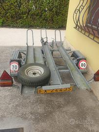 Carrello porta moto a 3 posti in buone condizioni generali, struttura solida e pronta all’uso. Ideale per il trasporto di più moto in sicurezza. Necessita solo di revisione. Prezzo interessante, ottimo affare.