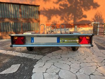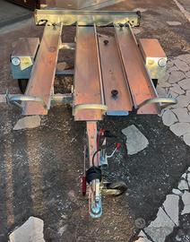 Vendo Carrello per trasporto moto a tre posti EFFECI modello FC 600 M con freni, immatricolato marzo 2019 usato solo tre volte e tenuto sempre in garage coperto, praticamente pari al nuovo. Telaio interamente saldato e zincato, guide fisse in lamiera zincata, scivola estraibile in lamiera zincata. Portatarga e porta luci posteriori ribaltabili in unica barra. Portata Kg. 500 Lunghezza totale Mt. 2,57 Larghezza totale Mt. 1.51 Ruote 145 – SR10 Prezzo trattabile