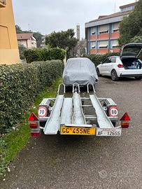 E possibile mettere 3 moto sopra , vi è una rampa metallica per facilitare il carico e scarico delle moto, sempre stato in garage al coperto, non presenta segni di ruggine, crepe o imperfezioni, è tutto funzionante dalle luci ai freni, il carrello è perfetto.