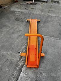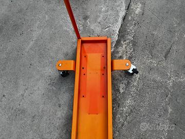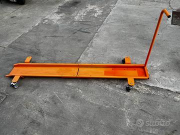 Carrello porta moto, con comodissima maniglia, freni in tutte e 4 le ruote, colore arancione, in ottime condizioni come da foto, mancante di blocca ruota.