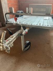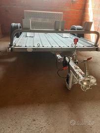 Rimorchio targato Cresci, allestito per trasporto di 3 moto, usato per pochissimi km, perfettamente funzionante, impianto elettrico compreso, fermo in garage da alcuni anni. necessaria revisione come da decreto legge 2018. alcune principali caratteristiche: • rampa di carico in alluminio per salire qualsiasi veicolo • sospensione a barra di torsione su gomma a ruote indipendenti • telaio profilato di lamiera grosso spessore zincata a caldo • piano di carico in lamiera sagomata • impianto luci a nuova normativa comprensivo di retromarcia • robusti ganci ad anello per fissare con sicurezza ogni tipo di carico