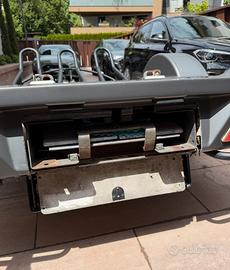 Vendo carrello porta moto Westfalia, ideale per il trasporto di 2 o 3 moto in totale sicurezza. Struttura solida e ben tenuta. Il carrello è dotato di pianale con superficie antiscivolo e archetti ferma ruota già installati. Presente anche ruotino anteriore per facilitare gli spostamenti a mano. Impianto elettrico funzionante. Dati principali: Lunghezza circa 3,55 metri Larghezza circa 1,70 metri Portata circa 770 kg Condizioni generali molto buone, sempre utilizzato con cura. Presenta solo normali segni di utilizzo. Revisione appena effettuata in data 14.04.2026, quindi pronto all’uso senza necessità di interventi. Documenti in regola. Visionabile su appuntamento. Per ulteriori informazioni o foto contattami. Prezzo leggermente trattabile