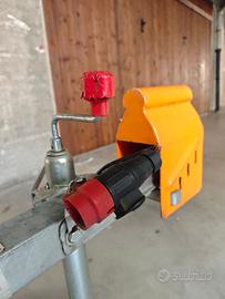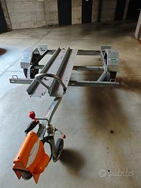 Carrello portamoto targato RSA Italia, modello con ruotino, puo' caricare/scaricare in modalita' fissa (con la sua rampa smontabile, trasportata su apposito blocco) oppure basculante (utilissimo per moto pesanti o molto lunghe/basse).