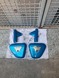Come da titolo, carrozzeria (CARROZZERIA, NO MOTO INTERA) per Honda CB 450 K4 1971 candy blue green, lavoro eseguito presso Kosmic Paint di G.Mingot (UD) un paio di anni fa. Trattamento interno, tappo serbatoio, rubinetto originale, emblemi tutti originali, compensatori con sgancio rapido, calotta con predisposizione interruttore luci, reggifaro, fianchetti. NO gommini fianchetti e catarifrangenti. Prezzo euro 1300,00. Possibile acquisto solo di serbatoio e fianchetti (per montarli su telaio K5 più frequente) euro 900,00. Offerte accette se sensate e coerenti. Spedizione in tutta italia non inclusa