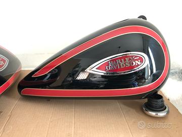Non esitate a contattarmi per info o ulteriori foto. Dispongo inoltre di altri pezzi come serbatoio softail 4.2 galloni, timer cover V2 gold, frecce bullet, faro tombstone, inserto pedale freno Nostalgic, trim panel FLSTS rosso o blu, ecc.