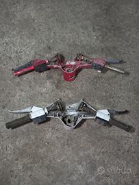 Vendo 2 manubri completi per vespa 50 Pk xl in ottime condizioni senza alcuna rottura, di cui quello di colore rosso possiede il pulsante per avviamento elettrico.