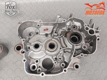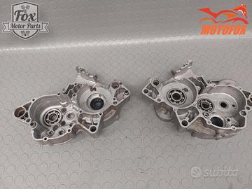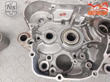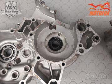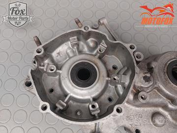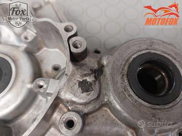 Coppia di carter centrali, in buone condizioni nel complesso. Sono state fatte un paio di riparazioni poco invasive. Una esterna si era rotto un filetto di fissaggio, è stato saldato forato e rifilettato. Poi zona pignone, una leggera saldatura
