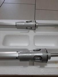Coppia cartucce originali (modello aperto) provenienti da forcella SACHS ZF 48mm modello 2, quella asimmetrica, di serie sulle Beta RR 300 250 standard ed altre cilindrate dai modelli 2019 in poi (produzione da Giugno 2018) che sul tappo destro ha oltre al registro dei click anche la ghiera a 3 punte per la regolazione del precarico molla.