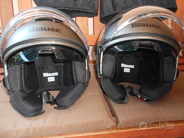 vendo coppia caschi Blauer taglia L/S presi l'anno scorso e usati pochissimo.Hanno l'interno amovibile e lavabile con doppia visiera. Pagati 120 euro l'uno. Non spedisco.