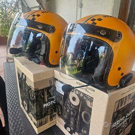 Vendo per cambio moto una coppia di caschi moto guzzi originali jet bobber giallo perlato opaco. In perfette condizioni, senza graffi. Misure S e M con interfono moto doppio con bluetooth sena sf2. Con visiere bubble e logo guzzi.