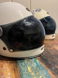 Bellissimi caschi tenuti bene Colore bianco e interno rosso Stile custom vintage Con visiera bombata scura Molto stilosi.