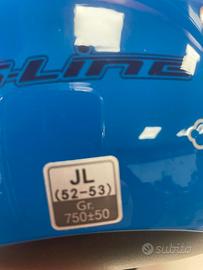 CASCO BLU TAGLIA JL (52-53) CASCO ROSSO TAGLIA JS (48-49) ETICHETTATI E CON PROTEZIONE SCHERMO ANCORA PRESENTE