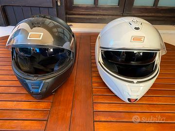 Coppia caschi modulari intercomunicanti e associabili al telefonino via bluetooth per ascoltare musica ecc…il casco bianco è un 55/56 S, e il nero è un 57/58 M - ognuno può ascoltare musica in maniera indipendente dal proprio telefonino, ma allo stesso tempo puo fare, sempre in via Bluetooth, la chiamata intercomunicante Vendo solo in copia