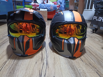 N°2 caschi XL e L in ottimo stato come da foto, visiere cromo e fumé perfette, interni lavati e igienizzati, compresi di custodia. Possibilità di conversione strada, enduro o jet.