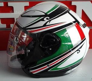 Grafica Flag Italia. Casco jet best-seller in Giappone, progettato per un utilizzo città/sport. La calotta è disponibile in 3 misure e costruita in materiale termoplastico a doppia densità di assorbimento all'impatto. Il modello AVAND II è dotato di stabilizzatore di scia WAKE STABILIZER®, sistema di ventilazione interna, sistema visiera SAJ, predisposizione PINLOCK® e interni completamente rimovibili e lavabili (rivestimento interno, guanciali e coperture sottogola).