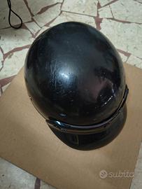 Casco a "scodella" nero unisex per scooter 50 cc. Si vende con due visiere removibili, di cui una montata e un'altra di riserva nello scatolo. Pratico cinturino con gancio a click. L'articolo si trova dentro un contenitore in tessuto, comodo se lo si vuole proteggere durante un trasporto. Buone condizioni generali, incluse quelle della stoffa interna. Presenta segni del tempo e qualche graffietto superficiale. Prezzo trattabile.