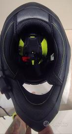 Calotta in fibra, visiera ampia e visierino parasole interno, predisposto per interphono, interni removibili lavati ed igenizzati.