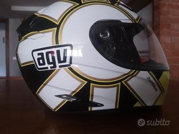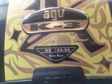 Vendo casco AGV k-3 valentino rossi ,il casco è pari al nuovo usato pochissime volte,nella calotta Esterna non presenta graffi o ammaccature e le prese d'aria funzionano;mentre per la calotta interna non sono presenti scuciture o sgualciture, la visiera è da sostituire,dispongo di scatola originale e di borsa porta casco originale.no perdi tempo