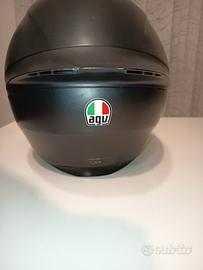 casco moto di un anno, MAI CADUTO, usato da mio figlio che è passato al jet, dotato di prese d'aria zona mento e superiori,. fodera interna in perfette condizioni, qualche riga sulla calotta e sulla visiera perché tenuto nell'armadio insieme ad altri due caschi. Eventuali altre foto su richiesta. Completo di fodera e scatola.