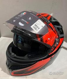 La sicurezza per tutti, ai più alti livelli: la calotta in materiale termoplastico ad alta resistenza, l'EPS multidensità e i dettagli come il profilo salvaclavicola e la visiera protettiva consentono a K3 di ricevere la stringente omologazione ECE22.06. Grazie al protocollo costruttivo AGV Extreme Safety, K3 supera con ampio margine i requisiti richiesti dalle più recenti normative internazionali.La versatilità è la sua forza. K3 è progettato per dare il massimo in ogni situazione. Il visierino parasole integrato, azionabile comodamente con i guanti indossati, viene in aiuto nelle situazioni di eccessiva luminosità, e non blocca la ventilazione frontale quando è in posizione di riposo. Il sistema antiappannamento Pinlock 70 MaxVision garantisce la massima visibilità anche nelle giornate più umide e fredde, quando la differenza di temperatura fra l'ambiente e l'interno del casco potrebbe causare pericolosi appannamenti della visiera. Non con K3. La visiera Ultravision, garantisce inoltre un campo visivo orizzontale di 190°, per vedere prima e meglio gli ostacoli, la strada e tutto ciò che sta davanti. K3 è predisposto per l'installazione di sistemi di comunicazione. Il disegno degli interni Eyewear Ready consente di indossare comodamente gli occhiali da vista o da sole durante la guida.