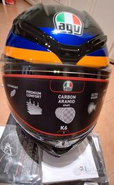 Casco AGV K6 Luca Marini nuovo mai indossato con cartellino ancora attaccato al cinturino, mai usato, taglia S. Pellicola visiera mai staccata, padanaso e libretto incluso (ancora in busta). K6 in fibra di carbonio, ultraleggero (verificate recensioni)