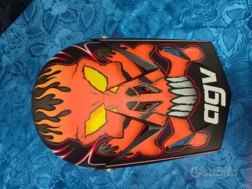 Casco AGV motocross Taglia L con decalcomania teschio, usato poche volte sempre con il sottocasco, tenuto bene ha giusto qualche segno sul casco se volete vi faccio foto degli eventuali segni ma oltre ciò