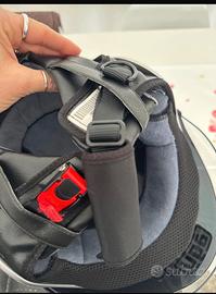 Casco Agv Bali II. Calotta esterna realizzata in resina termoplastica Hir-TIR (High Resistant Thermoplastic Resin). Il suo sistema di ventilazione conta con 3 estrattori posteriori. Imbottiture interne completamente smontabili e lavabili. Tessuto interno trattato igienicamente. Visiera City 6 in policarbonato antigraffio. Chiusura con regolazione micrometrica. Usato pochissimo in ottimo stato No macchie no sudore no usura no graffi Taglia S 55-56 6 7/8 - 7