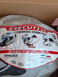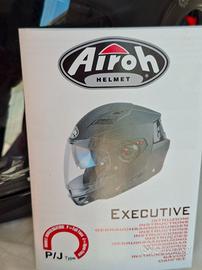 Airoh Executive si trasforma da casco integrale a jet in pochi secondi. Certificazione CE (aperto e chiuso). Progettato nella galleria del vento per garantire il massimo comfort e il minor rumore possibile. Caratteristiche: - mentoniera staccabile - interni anatomici, ipoallergenici e traspiranti - predisposizione per Pin-Lock, visiera antigraffio - visiera parasole integrata con regolazione esterna - prese d'aria superiori e posteriori regolabili - attacchi a sgancio rapido