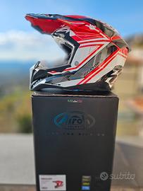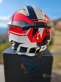 Il modello Airoh Aviator 3 si presenta come un completo Restyling della precedente versione 2.3 La calotta esterna, completamente rivista da cima a fondo, è ora realizzata in Carbonio HPC per un peso di 1350gr. in linea con i più alti standard di sicurezza. Le prese d'aria non mancano: possiamo trovare ingressi ed estrattori su mentoniera, fronte, fianco e nella zona superiore e posteriore. La calotta esterna è disponibile in ben 4 misure diverse, per dare ad ogni testa il casco meglio proporzionato. Le forme e gli spoiler presenti sono stati studiati nei minimi dettagli in galleria del vento per garantire un aerodinamica di altissimo livello. All'interno troviamo una calotta in EPS che sfrutta l'innovativo sistema AMS (due piccole calotte interne che slittano l'una sull'altra per ridurre l'energia rotatoria in caso di impatto) per garantire il massimo della sicurezza senza però intaccare la calzata del casco. Gli interni in spugna sono ora al 100% magnetici, per una praticità senza eguali quando bisogna andare a smontare le varie parti, siano esse i guanciali o la cuffia superiore. Resta comunque presente il sistemaAEFR per rimuovere i guanciali rapidamente anche indossando il casco quando, in caso di caduta, non è possibile spostare la testa per evitare pericolosi danni alla colonna vertebrale. La chiusura è doppio anello. ---- All'interno della confezione troverete: Supporto GoPro dedicato Sacca Porta-Casco Frontino esteso per le giornate più fangose Para-naso ridotto intercambiabile con quello più esteso presente di serie Set Viti Cover per le prese d'aria superiori Cover per le prese d'aria anteriori Bumper laterali per una maggior protezione quando si abbina il casco ad un collare Disponibile anche alla consegna a mano tra Lazio e Abruzzo. casco nuovo con etichetta.
