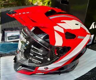 Airoh Commander 2 Mavick Red Gloss Taglia XL Perfetto Nuovo Immacolato !! Visierina Pinlock mai montata Scatola accessori ancora sigillata Indossato 1 volta x prova taglia … purtroppo sbagliata per me 😡 Enduro adventure touring casco dual per veri appassionati dell’adventure e del moto touring che può essere utilizzato in 3 diverse versioni, per essere sempre impeccabili. Questo nuovo upgrade riscrive completamente le regole del gioco! Tre diverse calotte ed una grande varietà di taglie disponibili enfatizzano il comfort di calzata, in fibra (Composite Carbon), con un sistema di ventilazione sofisticato, ingegnerizzato direttamente nella galleria del vento. Tra le grandi novità del Commander 2, i sistemi ASN ed AEFR per incrementare maggiormente la sicurezza del rider che ora potrà godersi il suo viaggio in completa libertà , senza perdere nemmeno il più piccolo dettaglio. Questo grazie anche all’incredibile visiera che consente una visione Extra Wide e si completa con i sistemi A3S (Airoh Automatic Antifog System) e di blocco. In aggiunta a tutto ciò, vi è una dotazione eccezionale disponibile direttamente all’interno della scatola che prevede anche la lente Pinlock® 120 XLT Max Vision, per accrescere esponenzialmente il piacere di guida, senza mai perdere di vista lo stile. Questo casco on off ha infatti un design inconfondibile arricchito da grafiche accattivanti in grado di soddisfare tutti i gusti.
