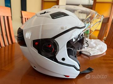Casco Airoh EX14 Executive bianco lucido taglia M usato solo un paik di volte e senza alcun segno di usura pari al nuovo. Ha la mentoniera staccabile e riponibile sul retro della calotta diventando così un casco jet. È dotato di visierino solare a scomparsa, chiusura micrometrica, pinlock trasparente (compreso) e predisposto per bluetooth.
