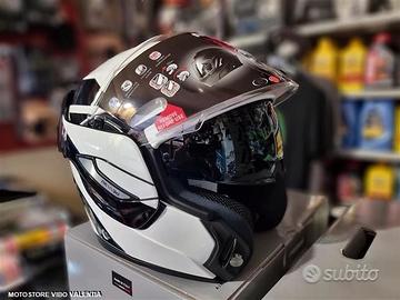 Questo modello 2-in-1 in termoplastica integra il meglio di entrambi i caschi, come la visiera Extra Wide per una migliore sicurezza attiva, la visiera parasole a scomparsa, Pinlock®, Stop Wind e predisposizione per il montaggio dei sistemi Bluetooth.